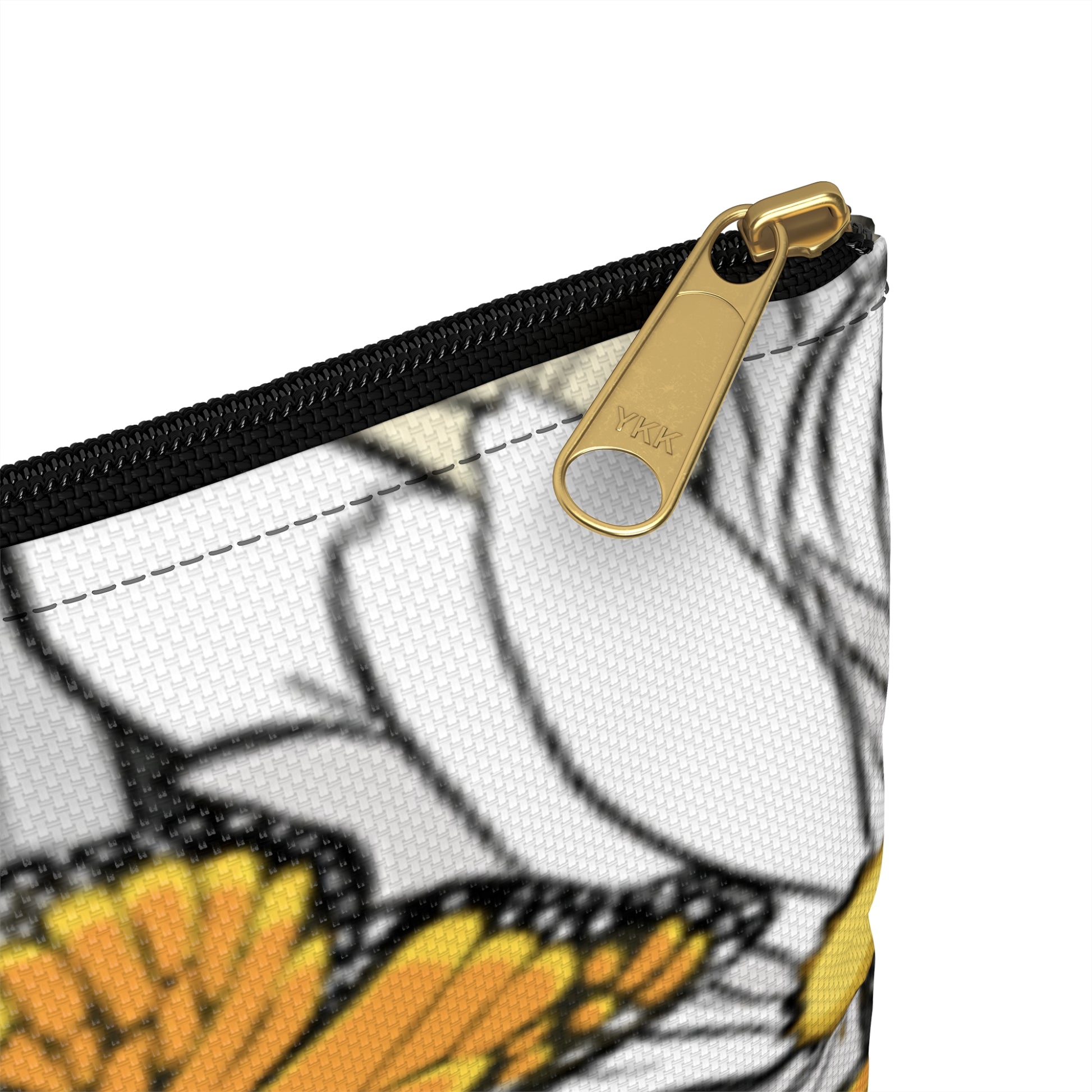 - Durable zipper closure with a stylish gold puller